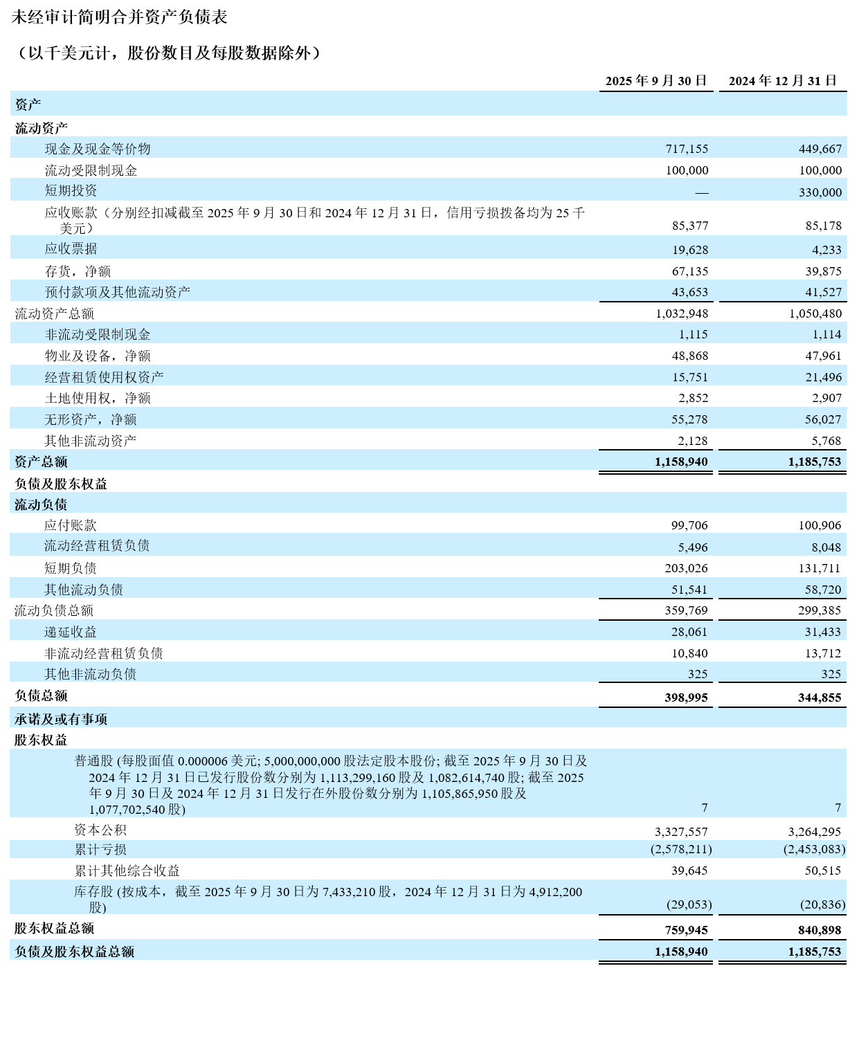 • 2025年第三季度的亏损净额为3,600万美元,归属于股东的每股普通股亏损为0.03美元(每份美国存托股份(ADS)亏损为0.33美元),2024年同期亏损净额为4,170万美元,每股普通股亏损0.04美元(每份ADS亏损为0.42美元)。亏损净额减少主要是由于产品收入的增长和运营开支的下降。